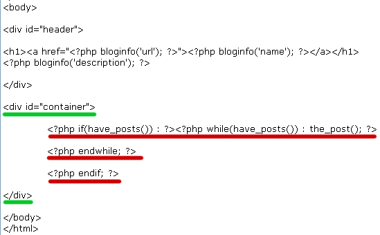- 注释:并不是所有的代码都需要两部分用来打开和关闭。有些代码能够自我关闭,这就解释了 have_posts() 和 the_post(); 这两个函数。因为 the_post(); 在 if() 和 while() 的外面,只需要分号去结束或者关闭。