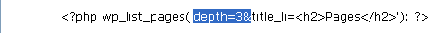 注意,我添加了 depth=3& 而不是仅仅 depth=3。这个 & 在这儿用于把 depth 和 title_li 这两个参数区分开。(如果你只有一个 about 页面链接,你将不会注意有什么不同。)