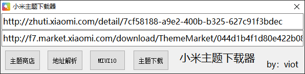 这里我们需要一款网友制作的工具「小米主题下载器」(注:易语言编写的,杀毒软件会误报,担心的就不要用了),点击主题商店,找到你喜欢的主题,复制地址,然后点地址解析,再下载。