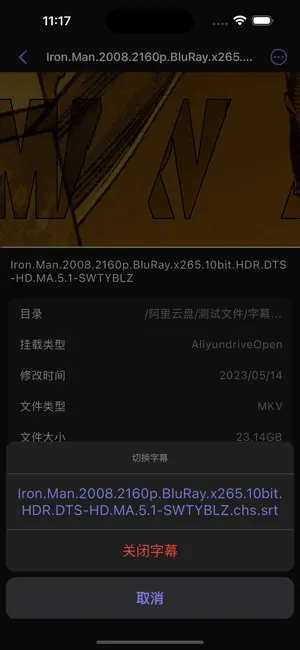 【视频预览】支持 mp4、mkv、avi、flv 等大部分视频的在线预览,本地浏览进度保存,同时支持 srt、vtt 字幕外挂。
