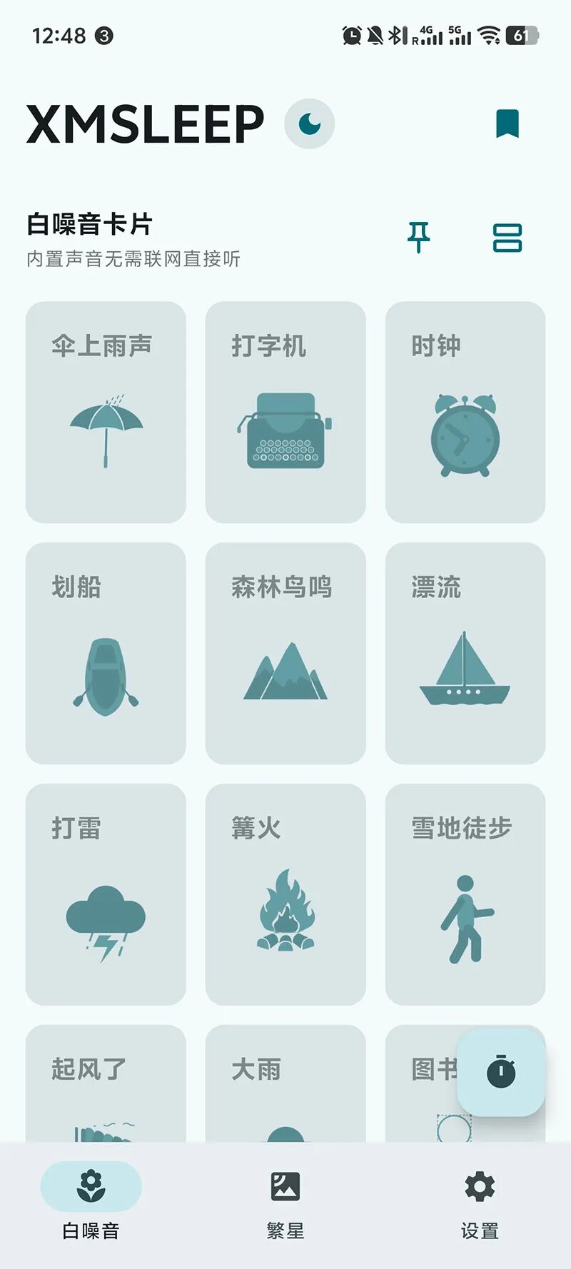 - 全局浮动按钮:显示正在播放的声音,支持快速暂停和展开查看
