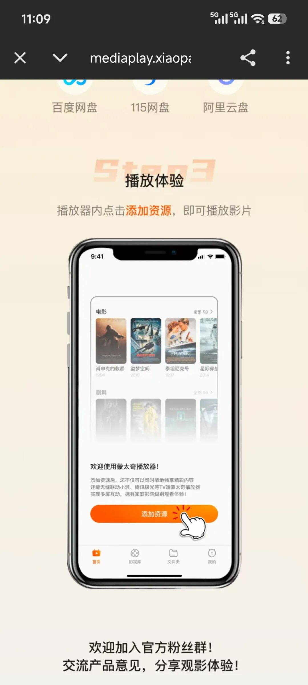 支持挂载网盘的播放器「小湃蒙太奇」为用户专属打造的私人影库,可以从你的各种网盘中导入影视资源播放使用,它能够智能整理多源内容,以海报墙形式呈现,并拥有丰富的解码格式。