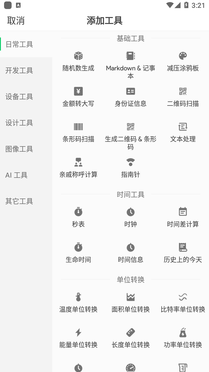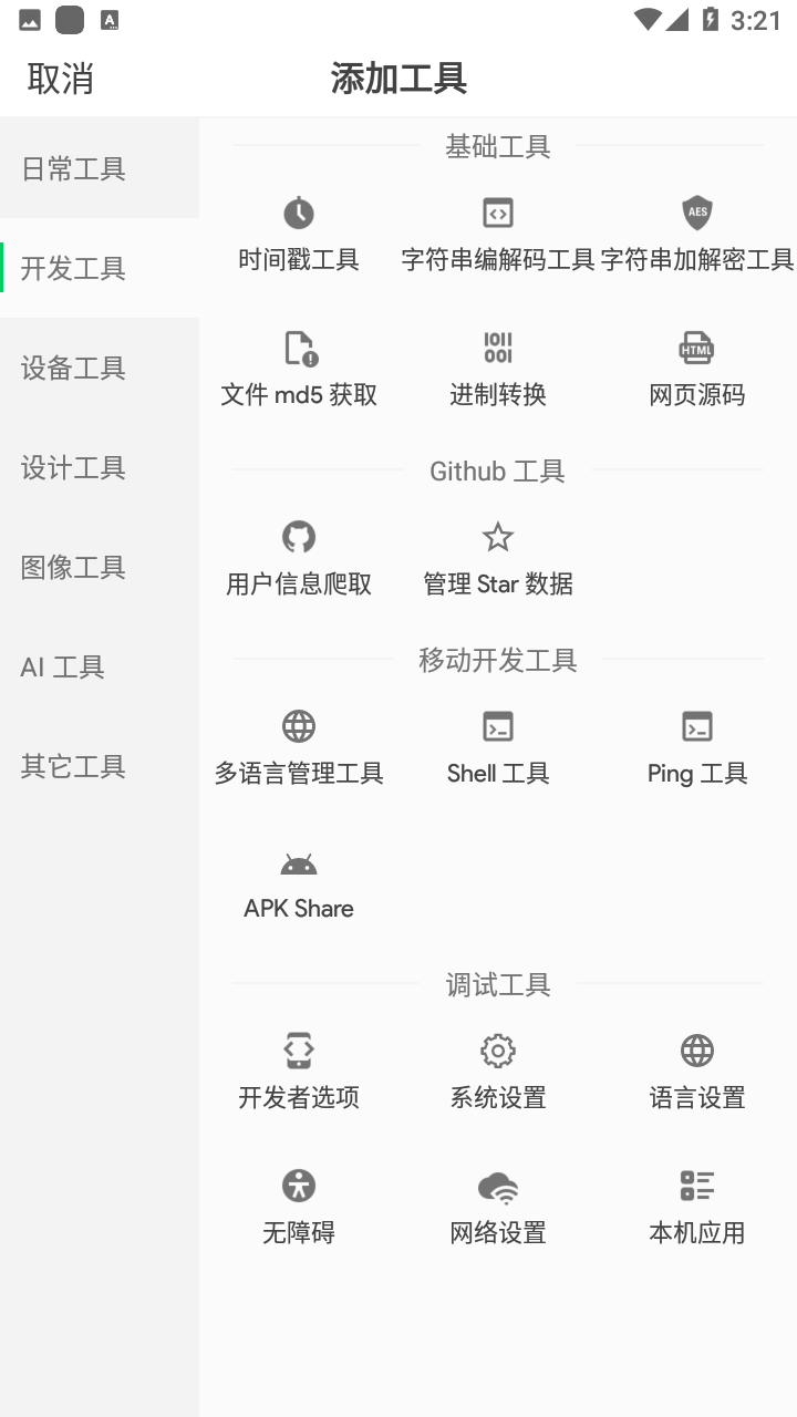 「移动工具箱」一款免费实用小工具合集,包含了多种多样的使用工具,全方位满足你的需求,包含有生活工具、开发工具、设备工具、AI 工具、设计工具、图像工具、其它工具等。