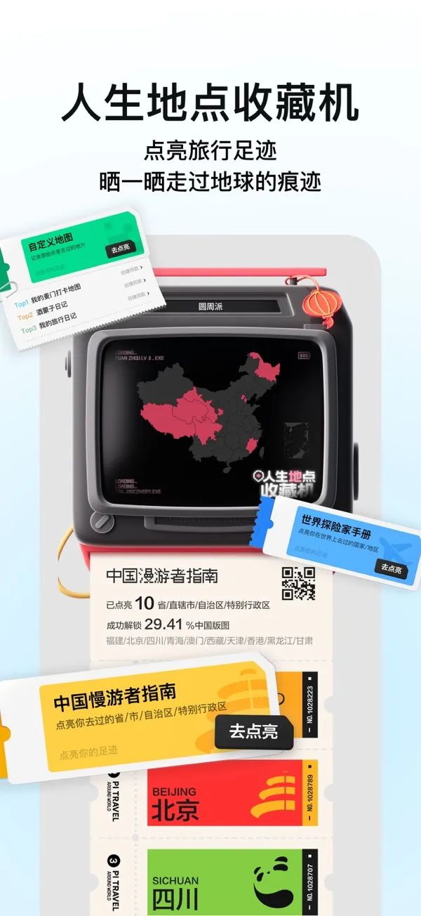提供旅游一键规划、行程复制、足迹打卡等功能的应用「圆周旅迹」轻松记录日常出行的足迹瞬间,它是你的个人地理日记本,在地图上不仅可以查看足迹,还包含相片、心情、日期等个性化信息。