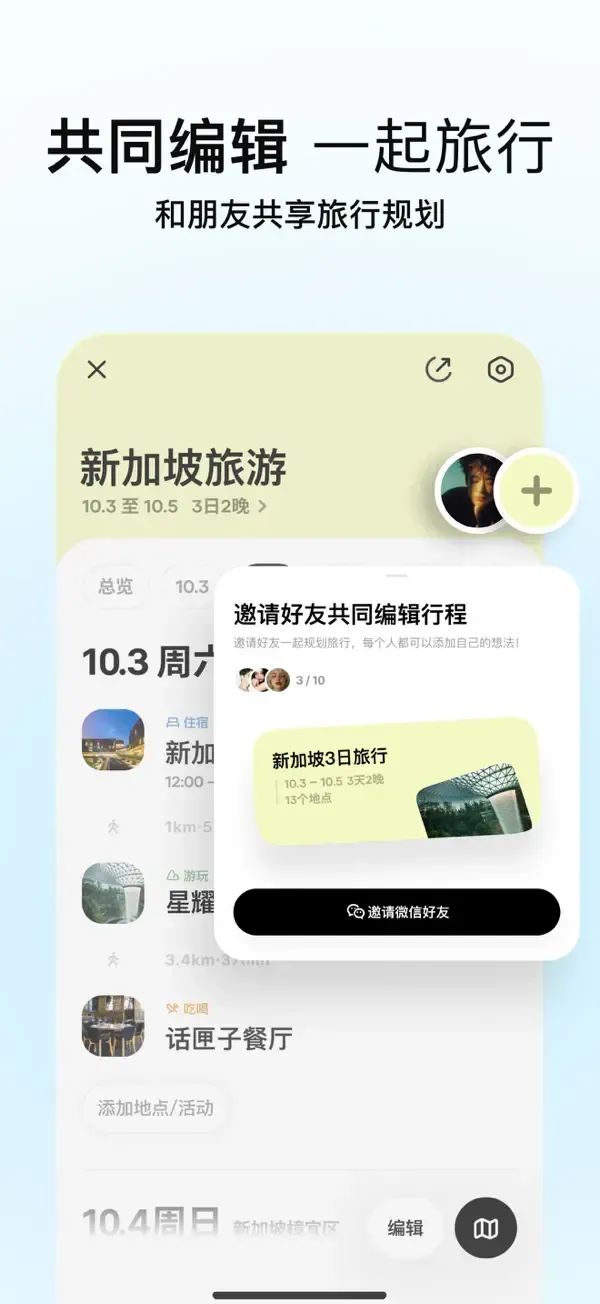 - 行程分享:分享一份完整的旅行指南给他人。